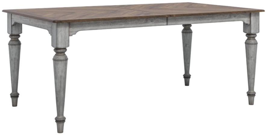 Dine and entertain in charming vintage style with the Plymouth rectangular dining table, featuring intricately turned legs for an appealing look. A distressed graywash finish contrasted by a medium brown top adds cottage-inspired character. Accommodate extra dining guests with two removable leaf inserts that increase tabletop space and then conveniently store away when not needed.Read More