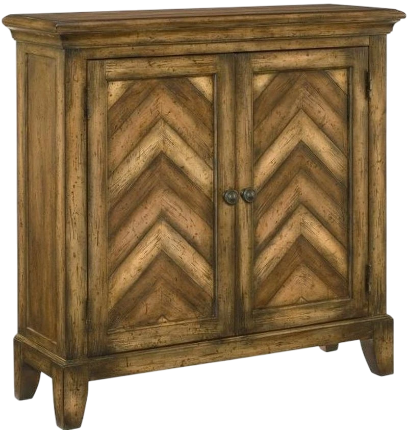 The Hammary® Hidden Treasures Chevron Cabinet effortlessly marries artisanal elegance with practical storage. Fashioned from poplar solids and rich maple, walnut, and cherry veneers, its front features a striking chevron pattern in warm brown tones that plays beautifully with light and adds texture to any interior.Read More