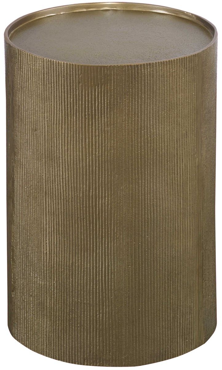 The Adrina Accent Table features a versatile design in cast aluminum with a heavily textured reeded exterior finished in a beautiful antique gold.Read More