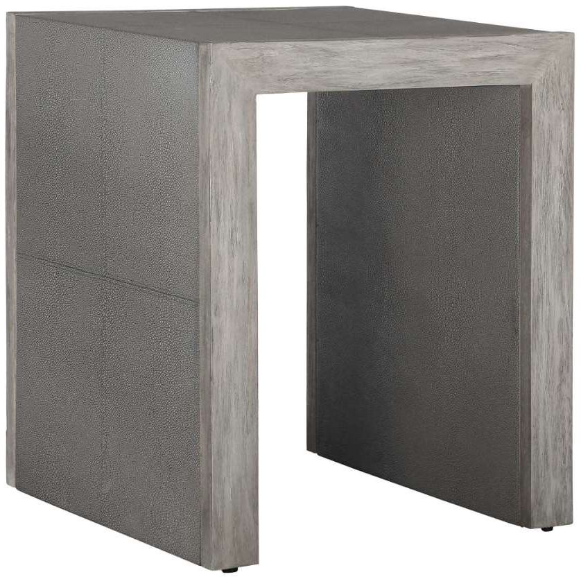 With modern elements, this transitional side table features stitched panels of light gray faux shagreen, paired with a contrasting wood finish in an aged white with gray distressed details. Make a bold statement by incorporating this stunning furniture into your home.Read More