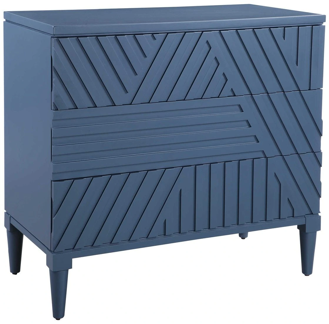 Refreshingly modern, this geometric accent chest features carved drawer fronts, creating a monochromatic statement in a deep sea blue finish.Read More